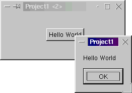ShowMessage is a simple CLX routine that produces a dialog whose caption matches the application title (the executable name by default) with a label in whose caption is the specified string. To test this application, choose Run | Run, or press F9 (or the toolbutton with the green triangle on). Kylix will compile your source code and link it into an executable and then launch that executable. The program will appear as a grey form, the same size as the Form Designer you were using, with a button on it. When the button is pressed, a message box appears saying Hello World (shown in Figure 10).