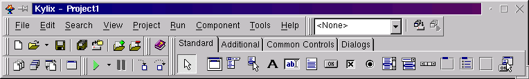 Figure 4: The main Kylix window holds menus, speedbars and the Component Palette