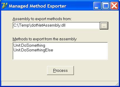 Such a utility would be best written as a command-line application, however a GUI project that shows the idea accompanies this paper, called mme.dpr (Managed Method Exporter).