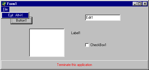 One standard action that has not been documented is THintAction. The VCL creates a THintAction to represent a component’s Hint property (typically displayed as a tooltip) as soon as you move your mouse over a control. The only in-built purpose for the hint action is to allow a special property of the TStatusBar class to do its job.