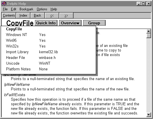 To avoid memory management calls, a character array is used for the PChar parameter. This array can be assigned to the function’s result String when done and Delphi will translate from the null-terminated string format to the Delphi string format automatically. Listing 20 shows the result.