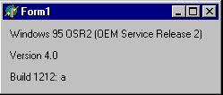 Listing 21 shows how to distinguish between the current platform versions, although this may need modifying once the shipping version number for Windows Millennium Edition is known. This code can be found in the Win32VersionCheck.dpr Delphi 3 (or later) project, which also does some further analysis to identify Windows 95 OSR2 (the low word of the build number is more than 1080), as shown in Figure 12.