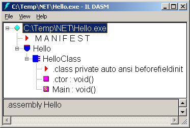 Running ildasm.exe on the simple Hello World application produces this.