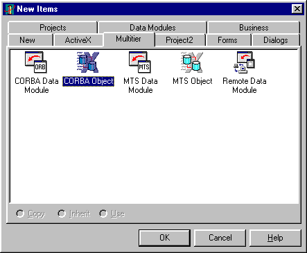 Now choose File | New... and from the Multitier page choose a CORBA Object.