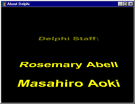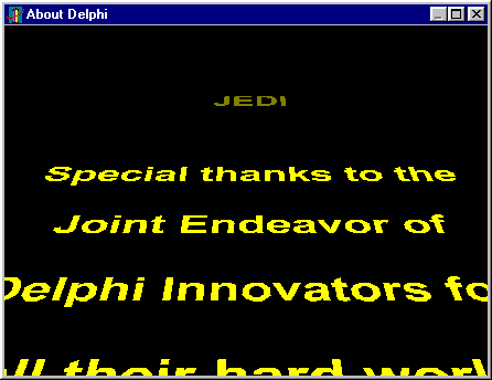 The remaining eggs are invoked through the About box. If you do not have OpenGL installed, the credit lists will be simple scrollers, much like those from Delphi 4.